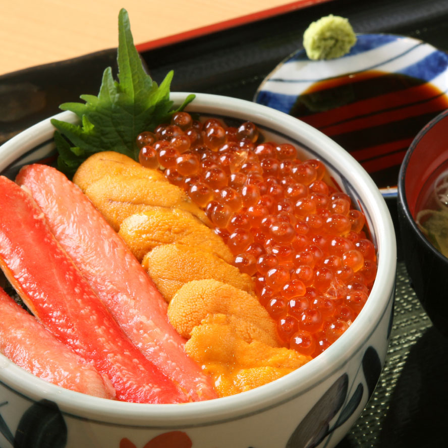 Surrounded by the sea on all sides, Hokkaido is a treasure trove of fresh seafood. Especially exceptional are the three major crabs—hairy crab, red king crab, and snow crab—along with richly flavorful sea urchin and popping salmon roe. These delicacies can be savored in sushi, seafood bowls, and robatayaki.