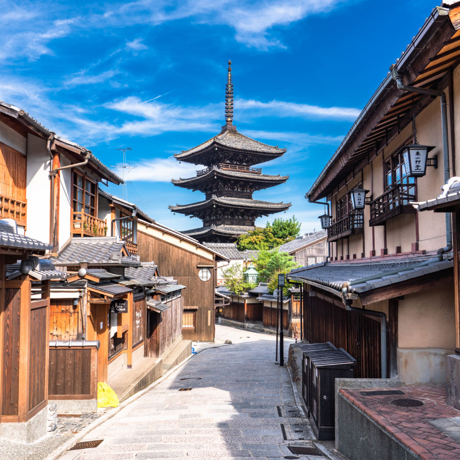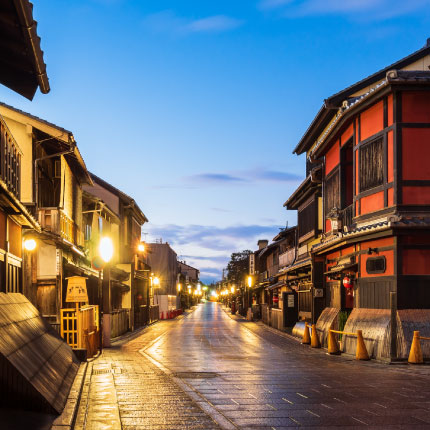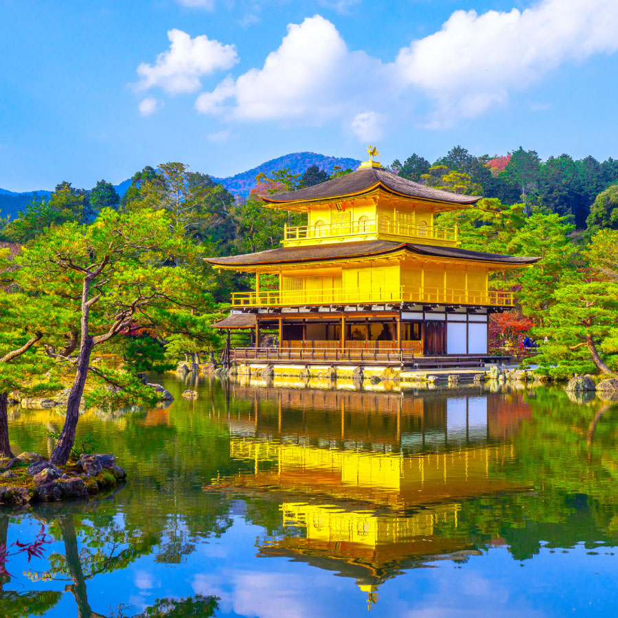 By train to Kyoto. In the morning, take in the cityscape from the stage of Kiyomizu-dera Temple. In the afternoon, visit the golden Kinkaku-ji Temple and its tranquil rock garden. At dusk, stroll along the stone-paved streets of Gion. With a bit of luck, you might catch a glimpse of a maiko, spending a magical evening.