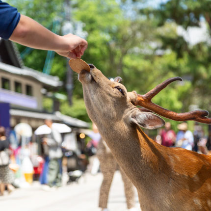 On the final day, we head to nearby Nara. At Nara Park, friendly deer greet us. After being overwhelmed by the colossal Great Buddha at Tōdai-ji, the world's largest wooden structure, we stroll through the historic streets of Naramachi, bringing our journey to a peaceful close.