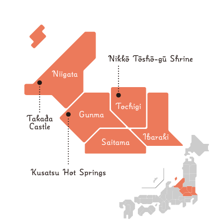 Northern Kanto and Niigata, easily accessible from Tokyo, are a treasure trove of diverse attractions. You can enjoy the World Heritage sites of Nikko Toshogu Shrine (Tochigi) and Tomioka Silk Mill (Gunma), the hot springs of Kusatsu and Kinugawa, and the magnificent natural beauty of Oze and the coastline (Ibaraki and Niigata). This is a golden route where you can fully enjoy history, nature, and food.