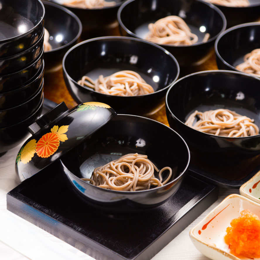 Wanko Soba is a famous culinary tradition of Morioka, where bite‑sized portions of soba noodles are served continuously into your bowl by an attendant calling out rhythmic phrases as they work. When you’ve had your fill, the custom is to quickly place the lid on your bowl to signal that you’re finished. Guests can enjoy the experience by adding various condiments to change the flavor as they go. This lively and hospitable style of dining is one of Morioka’s most iconic local specialties—an unforgettable experience for visitors.