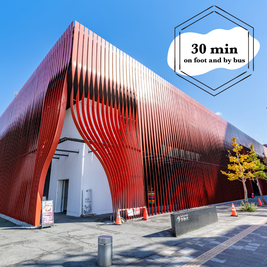 Taking the bus for "AEON MALL Morioka-Minami" from the East Exit of Morioka Station. It takes approx. 10 mins to the final stop, "AEON MALL Morioka-Minami" where you are getting off.